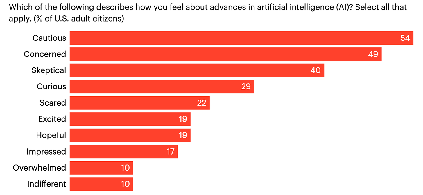 Let’s look at the following poll by YouGov, which shows the major emotions people have about AI: